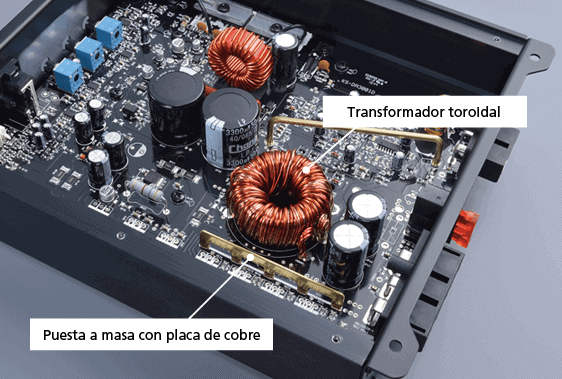Fuente de alimentación estable asegurada gracias a un transformador toroidal de gran tamaño. Su bobina de alta densidad y baja fuga de flujo mejora la eficiencia de conversión de la energía. El resultado es la reproducción natural y potente de música en toda la gama de volumen.