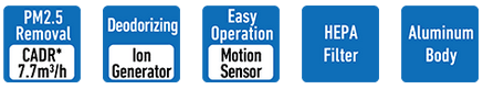 Ajuste fácilmente la velocidad del viento agitando la mano sobre el purificador. Agite una vez para ingresar al modo de baja velocidad, luego agite nuevamente para cambiar al modo de alta velocidad, que se desodoriza rápidamente. Sacudir por tercera vez apagará la corriente.