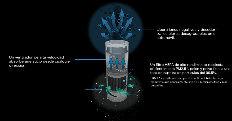 Filtro HEPA con filtración de 3 etapas / controles activados por movimiento / lo suficientemente portátil para el portavasos del automóvil